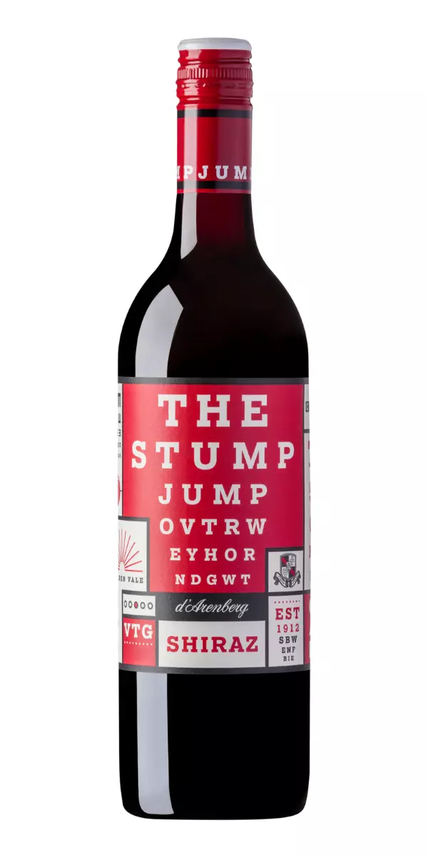 Seguindo a veia espirituosa da d’Arenberg, o rótulo do Stump Jump brinca com o tamanho das fontes para testar a visão do consumidor, servindo como um teste de sobriedade improvisado. Se você conseguir segurar a garrafa com o braço estendido e ler o rótulo frontal de forma correta, é por que você pode saborear mais uma taça!